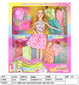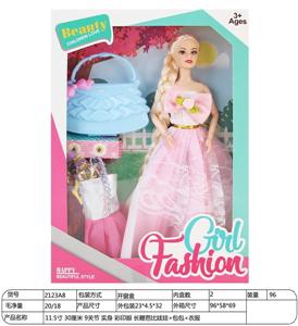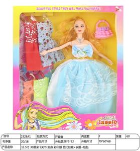 【英文】11.5寸30厘米9关节实身彩印眼长鞭芭比娃娃+包包+衣服