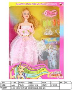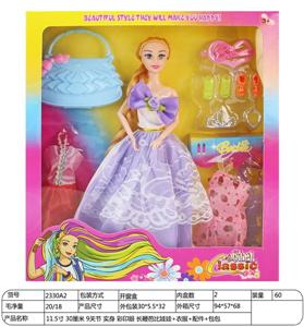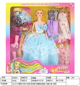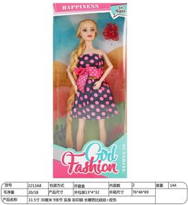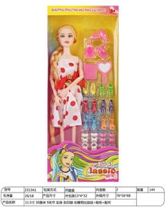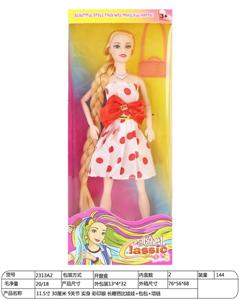 【英文】11.5寸30厘米9关节实身彩印眼长鞭芭比娃娃+发饰