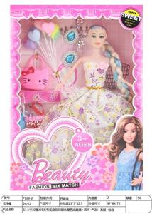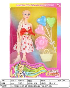 【英文】11.5寸30厘米11关节实身彩印眼长鞭芭比娃娃+气球+帽子+包包