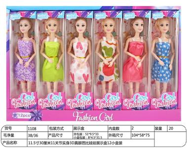 【英文】11.5寸30厘米11关节实身3D真眼芭比娃娃展示盒12小盒装