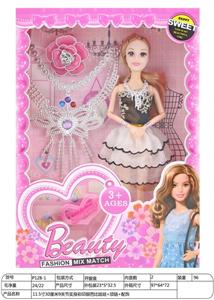 【英文】11.5寸30厘米9关节实身彩印眼芭比娃娃+项链+配饰