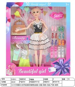 【英文】11.5寸30厘米11关节实身彩印眼芭比娃娃+衣服+鞋柜+包包+气球+配饰