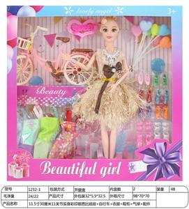 【英文】11.5寸30厘米11关节实身彩印眼芭比娃娃+自行车+衣服+鞋柜+气球+配件