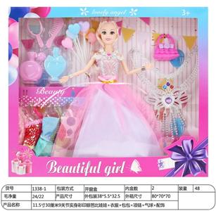 【英文】11.5寸30厘米9关节实身彩印眼芭比娃娃+衣服+包包+项链+气球+配饰
