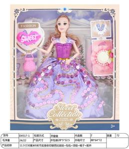 【英文】11.5寸30厘米9关节实身彩印眼芭比娃娃+包包+项链+帽子+配件