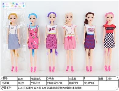 【英文】11.5寸30厘米11关节实身3D真眼麻花辫芭比娃娃多款混装