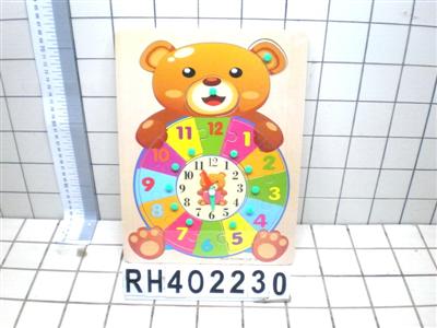 小熊时钟木制抓手拼板