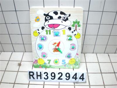 奶牛时钟木制抓手拼板