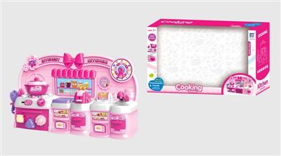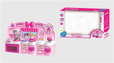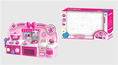 卡通粉红色益智厨房、厨具组合
