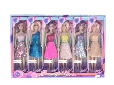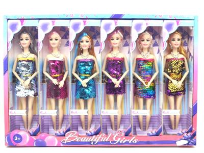 11寸时尚亮片芭比娃娃套装一展示盒6小盒装