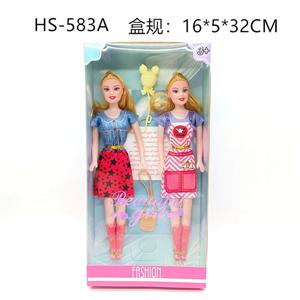 11.5寸实身定向手时尚双人芭比娃娃女孩