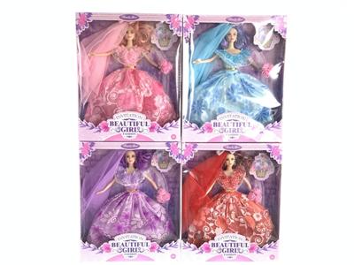 11.5寸实身活手婚纱大芭芘配头巾、玫瑰花