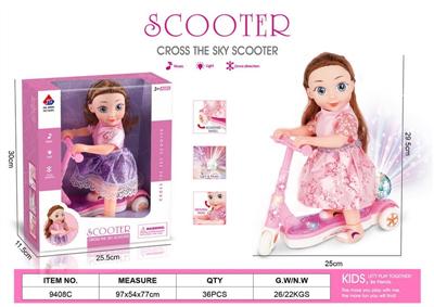 电动滑板车娃+三闪灯(带灯光和音乐)