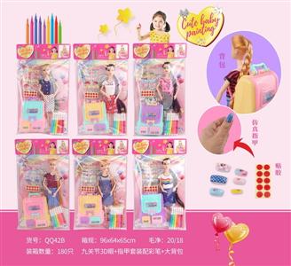 11寸PVC卡头袋9关节娃娃配彩笔+背包+指甲套装