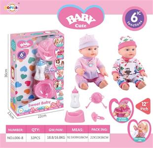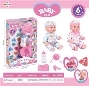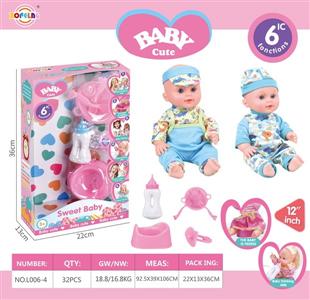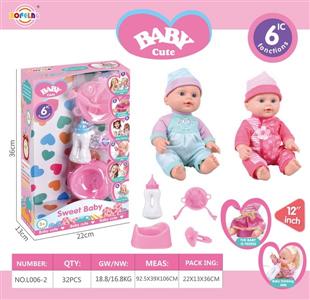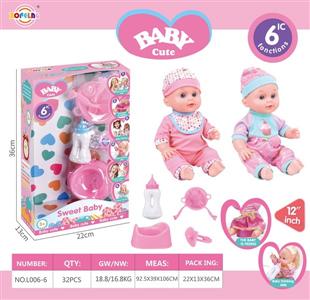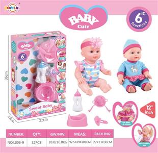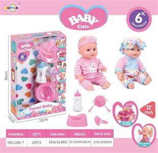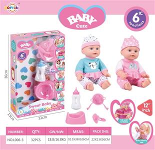 12寸喝水尿尿娃娃公仔套装(娃娃+奶瓶+餐盘+叉子+汤勺+尿盆+奶嘴)带6声IC(包电)
