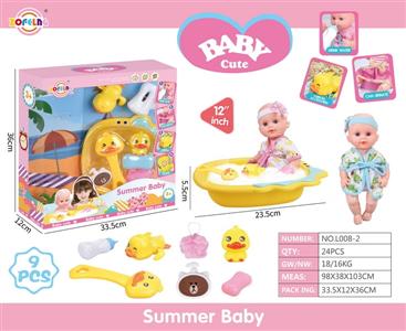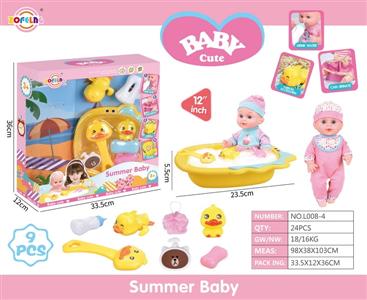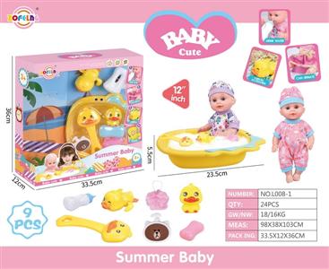 12寸浴盆娃娃公仔套装(娃娃+浴盆+肥皂+浴刷+小黄鸭+浴球+沐浴露瓶+奶瓶+上链戏水小黄鸭)不带IC