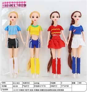 11.5寸 30厘米 9关节 实身 3D真眼 长鞭拉拉队服芭比娃娃 多款混装