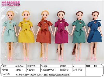 11.5寸 30厘米 13关节 实身 3D真眼 长鞭芭比娃娃 多款混装
