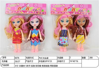 6寸 16厘米 5关节 实身 彩印眼 卷发娃娃 两款混装