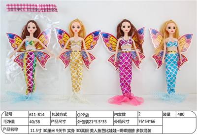 11.5寸 30厘米 9关节 实身 3D真眼 美人鱼芭比娃娃+蝴蝶翅膀 多款混装
