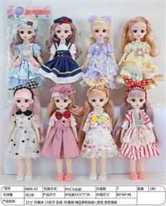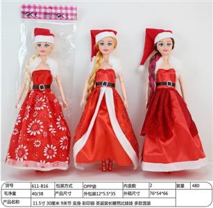 11.5寸 30厘米 9关节 实身 彩印眼 圣诞装长鞭芭比娃娃 多款混装