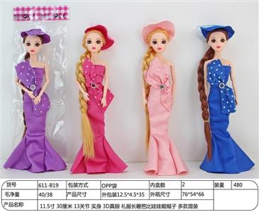 11.5寸 30厘米 13关节 实身 3D真眼 礼服长鞭芭比娃娃戴帽子 多款混装