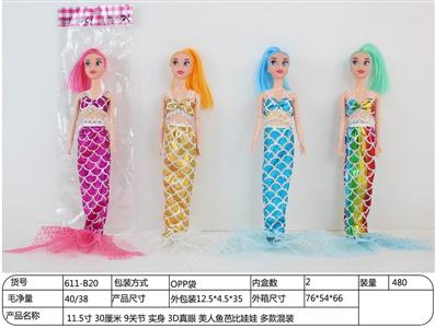 11.5寸 30厘米 9关节 实身 3D真眼 美人鱼芭比娃娃 多款混装