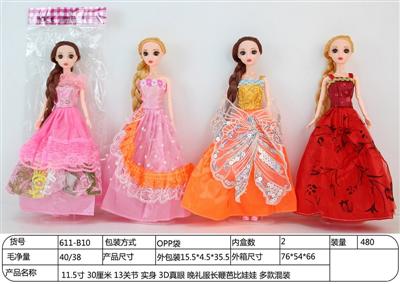 11.5寸 30厘米 13关节 实身 3D真眼 晚礼服长鞭芭比娃娃 多款混装