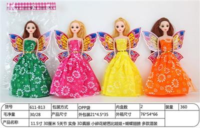 11.5寸 30厘米 5关节 实身 3D真眼 小碎花裙芭比娃娃+蝴蝶翅膀 多款混装