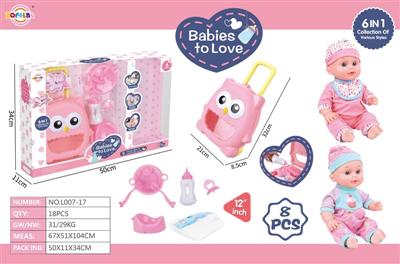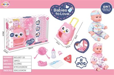 12寸喝水娃娃套装 IC6声 +拉杆箱+餐盘+汤勺+尿布+奶瓶+奶嘴+尿盆
