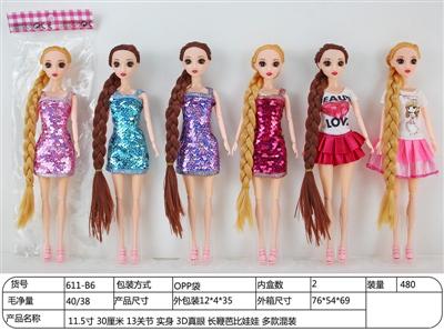 11.5寸 30厘米 13关节 实身 3D真眼 长鞭芭比娃娃 多款混装