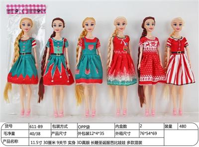 11.5寸 30厘米 9关节 实身 3D真眼 长鞭圣诞服芭比娃娃 多款混装