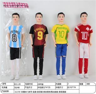 11.5寸 30厘米 5关节 实身 彩印眼 球衣男生芭比娃娃 多款混装
