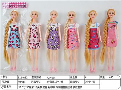 11.5寸 30厘米 13关节 实身 彩印眼 休闲服芭比娃娃 多款混装