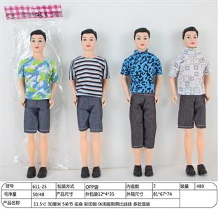 11.5寸 30厘米 5关节 实身 彩印眼 休闲服男芭比娃娃 多款混装