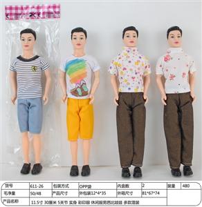 11.5寸 30厘米 5关节 实身 彩印眼 男生芭比娃娃 多款混装
