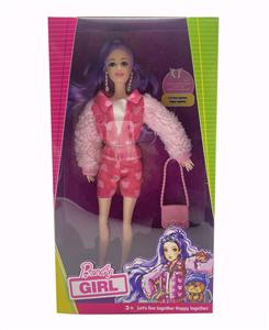 美泰版11.5寸12关节实身粉色皮草夹克明星芭比耳环,手提包。【手脚都是大脚和大手不是普通身体】