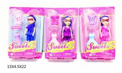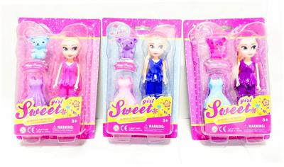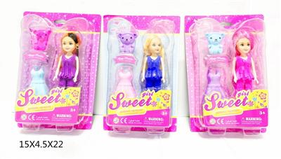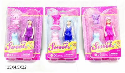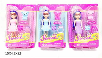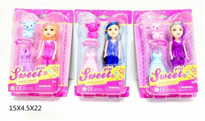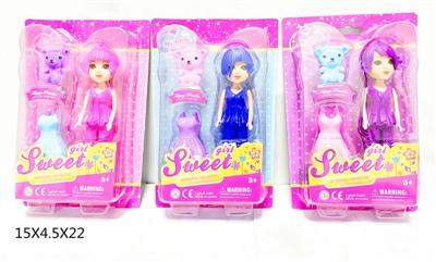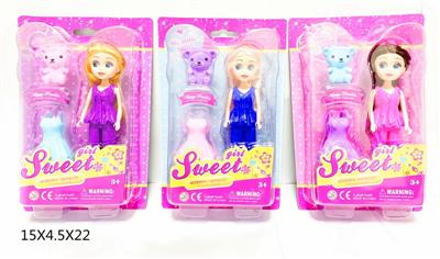 7寸大眼妹娃娃(塑胶头发)配小熊,裙子