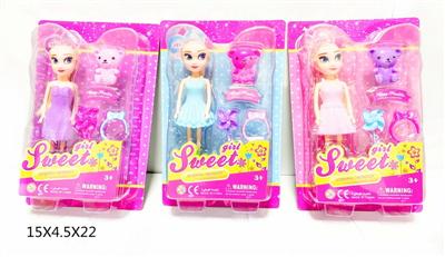 7寸冰雪公主配小熊,小风车,发扎