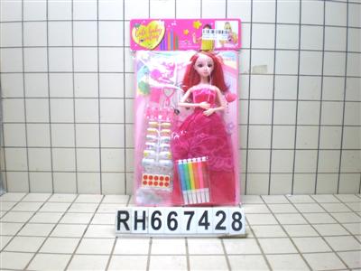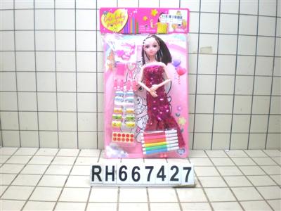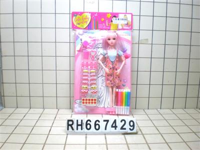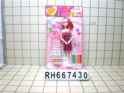 PVC卡头袋11寸九关节娃娃配彩笔+涂涂卡(衣服多色混装)