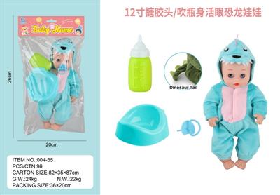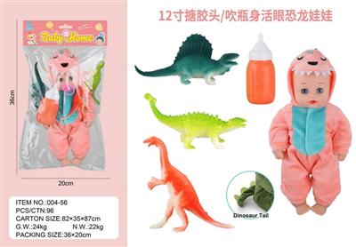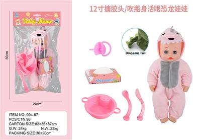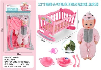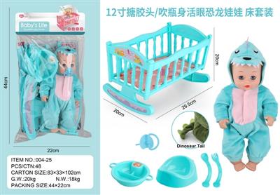 12寸搪胶头/吹瓶身活眼恐龙娃娃 床套装