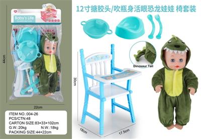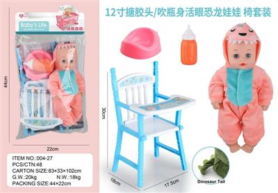 12寸搪胶头/吹瓶身活眼恐龙娃娃 椅套装