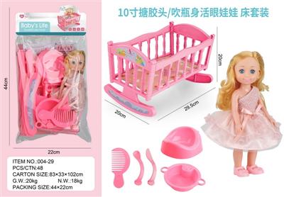 10寸搪胶头/吹瓶身活眼娃娃 床套装