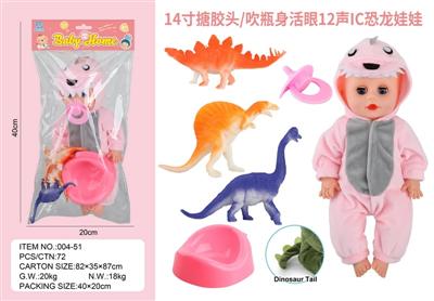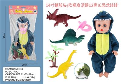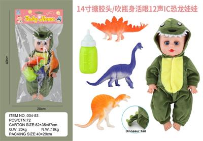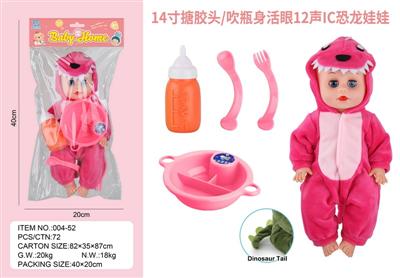 14寸搪胶头/吹瓶身活眼12声IC恐龙娃娃