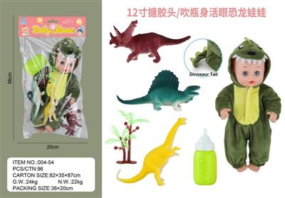 12寸搪胶头/吹瓶身活眼恐龙娃娃
