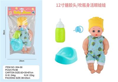 12寸搪胶头/吹瓶身活眼娃娃