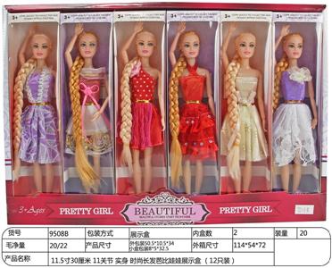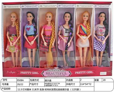 11.5寸30厘米 11关节 实身 时尚长发芭比娃娃展示盒 (12只装)