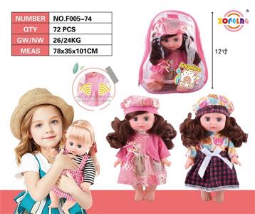 12寸全身搪胶娃娃黑发女孩公仔 无帽子 带俄文IC 6声 包电