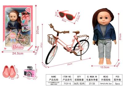 12寸全糖胶女公仔+相机+单车