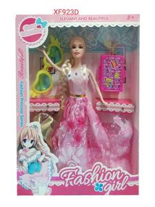 窗盒11.5寸实身长辫子晚装芭比配服装+眼镜+行李箱